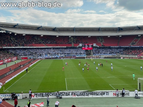 Die Gästefans hingegen hatten einen Sahnetag erwischt: Mit gut 6.000 Leuten nach Nürnberg gekommen, tolle Stimmung gemacht und letztendlich 3 Tore bejubeln können. Auch durch diesen Andrang konnten wir heute 38.923 Zuschauer im Max-Morlock-Stadion begrüßen.