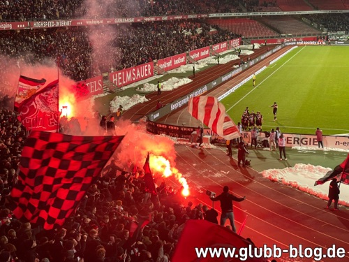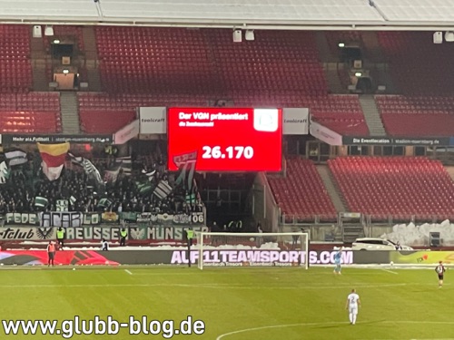 Gute Stimmung im Max-Morlock-Stadion, das muss man sagen, auch wenn die Zuschauerzahl wieder sehr mau war. Nur 26.170 Zuschauer kamen bei nasskalten Witterungsverhältnissen zum Zuschauen. Scheinbar haben sich wirklich die ganzen Oberfranken, Unterfranken und Oberpfälzer nicht ins Stadion getraut – was zur Zeit verständlich ist, wie unregelmäßig die Öffis fahren.
