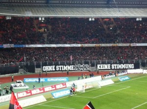 Das Spiel begann im “Meer der Stille”! Denn auch Nürnbergs Fans beteiligten sich an der Bundesliga-weiten Aktion “12:12 – Ohne Stimme keine Stimmung!“. Teilweise war es sehr befremdlich im Stadion ein “Gebrabbel” zu hören und keine Fangesänge – selbst die Gäste aus Hoppenheim beteiligten sich an der Aktion, doch von den 160 mitgereisten Fans wäre auch so kein “Mords-Lärm” zu erwarten gewesen…