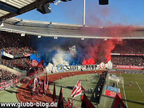 Diesmal keine Choreo, die grandiose Arbeit zum 125. Geburtstag überstrahlte eh alles! Zumal ich mir unter der Woche ein Bild machen konnte, wie phantastisch die Ultras Nürnberg organisiert sind. Unfassbar wie sie es schaffen, junge Menschen so zu motivieren, dass sie in ihrer Freizeit Zaunfahnen sortieren, Aufkleber zählen oder Getränke kaufen fahren. Hat mich ziemlich geflasht, das muss ich schon zugeben.