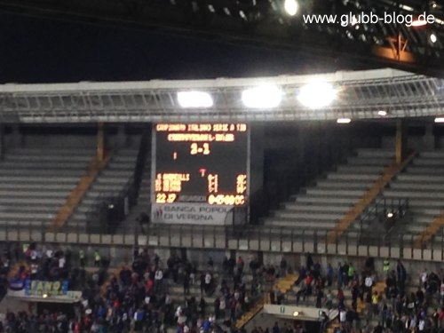 Die Nähe des Gardasees zu Verona ist bekannt; und natürlich auch dass in Verona gleich zwei Mannschaften in der Serie A spielen: Hellas Verona und Chievo Verona. Und die Spiele der italienischen ersten Liga laufen ja an den Abenden grundsätzlich um 20:45 Uhr, zum Glück. Daher gönnten wir uns also das Spiel Chievo Verona gegen Inter Mailand.